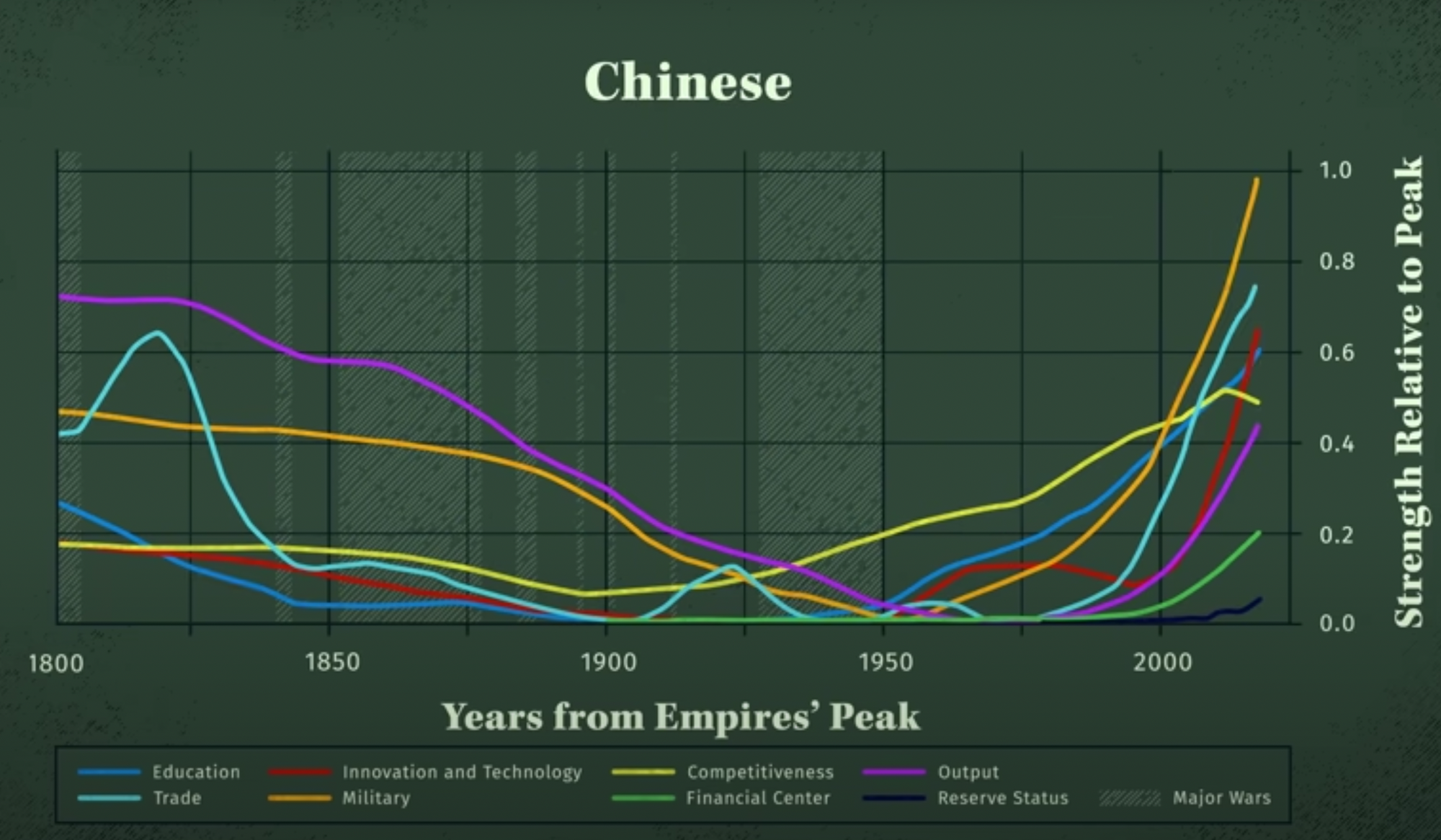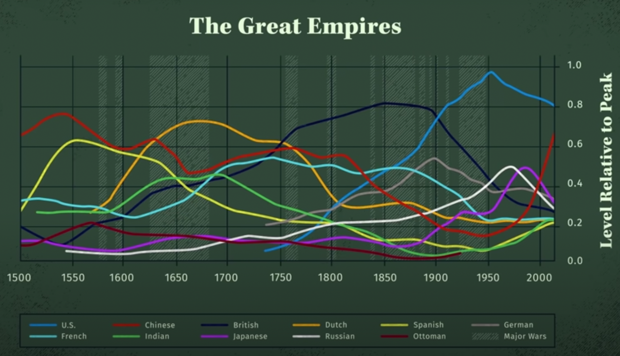 - At this point, the empire is simply not profitable and becomes bureaucratic. This increases internal and external friction and chances for escalation: war.